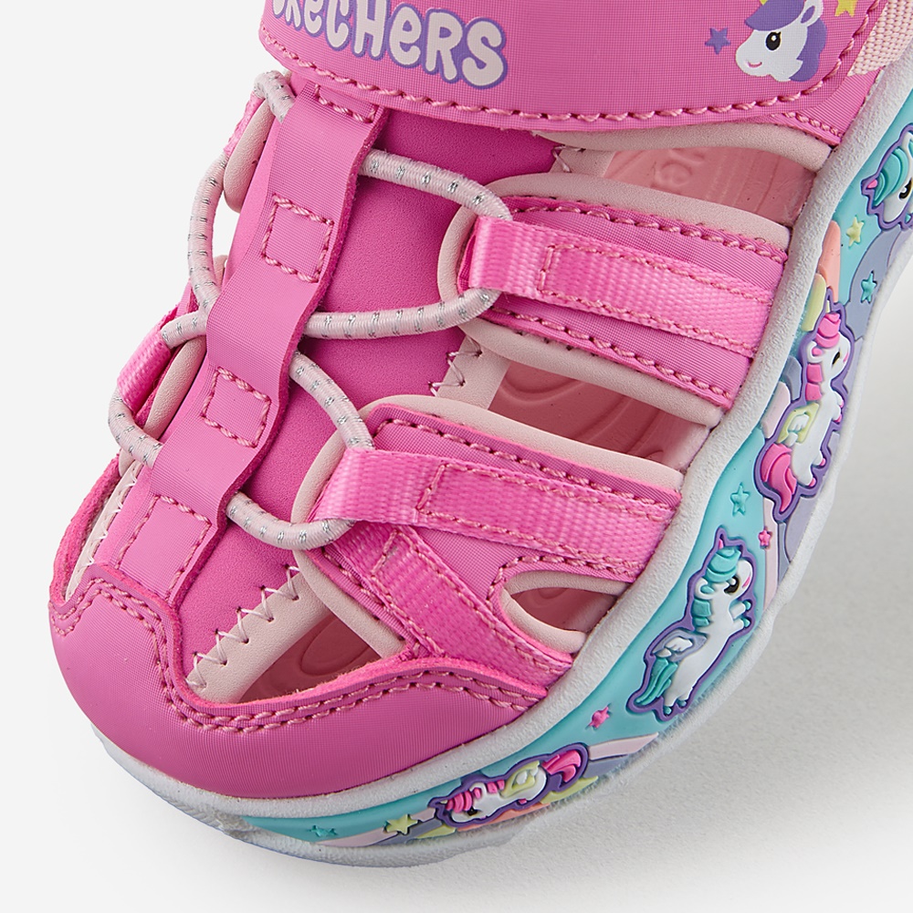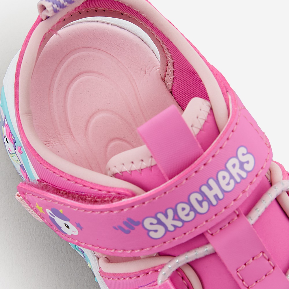 사이즈가 조금 크게 나온 것 같아요! 보통 150 신어서 150으로 주문했다가 커서 140으로 교환했어요~! 140 살짝 여유있게 잘 맞네요~! 교환 비용도 없고, 교환 과정도 빨라서 너무 좋습니다!!:) 신발이 가벼워서 여름 내내 잘 신길 것 같아요 ㅎㅎ 또 디자인도 너무 예뻐서 아이가 좋아하네요 매일 이 신발만 신겠다고 해요 ㅎㅎ 샌들인데 앞코가 막혀서 안전하고 편하게 신기 좋아요 그리고 아이 혼자 신고 벗기도 편해요 스케처스에서 아이 신발을 처음 사보는데 너무 만족합니다 다른 신발도 구입하려고요