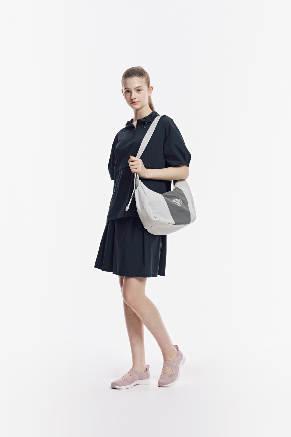 유니 라운드 배색 숄더백